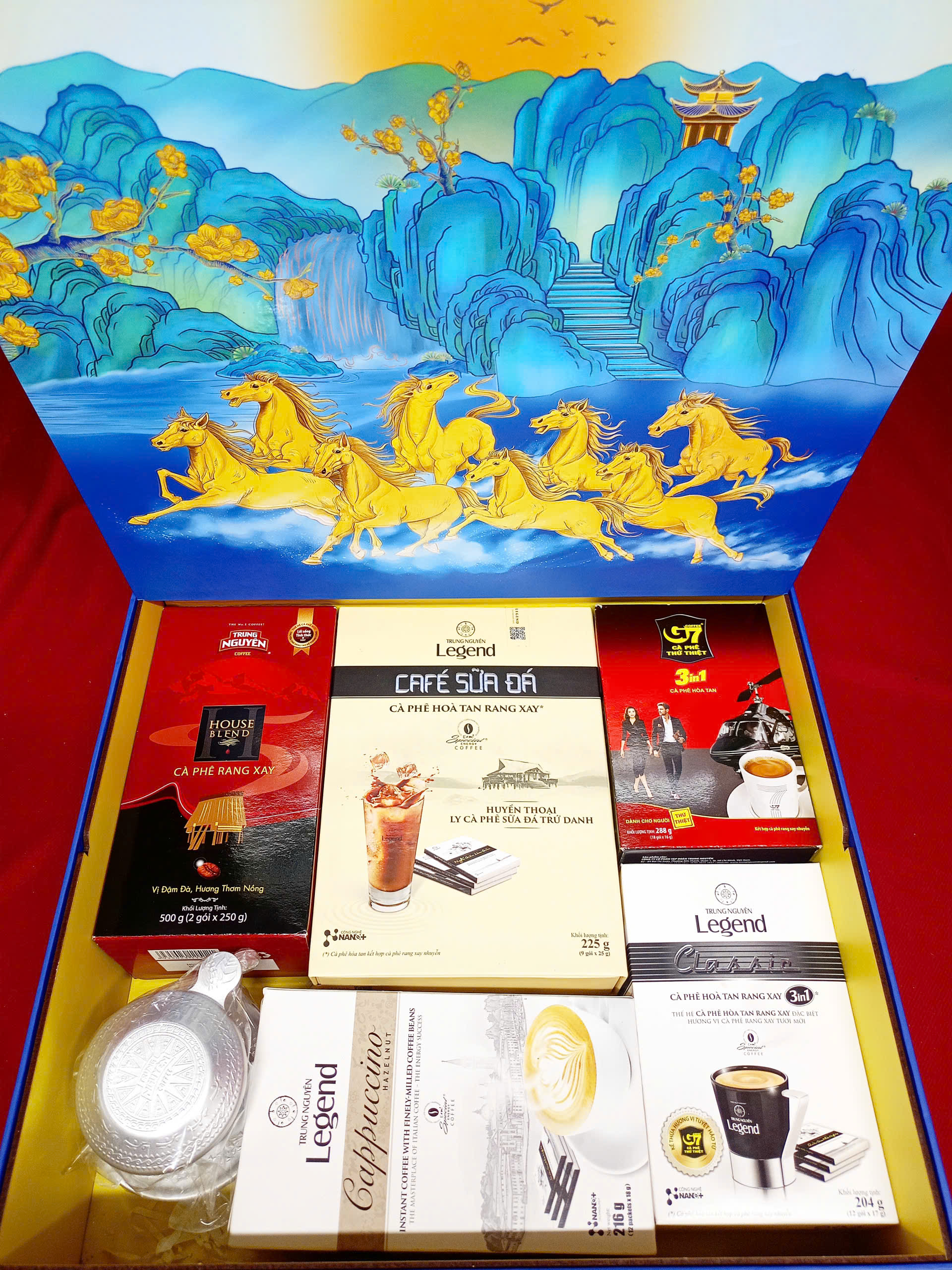 Set quà với nhũng tuyển chọn đặc biệt từ Dòng cà phê pha phin, cà phê hòa tan , cà phê sữa đá, cà phê đen … trọn vẹn phong vị của Thế giới cà phê! Đi cùng Trung Nguyên Legend, chúng tôi kiến tạo Set Hộp quà chính hãng Trung Nguyên Legend – phiên bản đa sắc – giới thiệu nhũng khía cạnh đa dạng của cà phê là món quà chân tình dành tặng cho Người quan trọng một cách tinh tế, độc đáo và truyền tải trân thành, sâu sắc lời tri ân đến đối phương! Vừa chân thành, vừa ý nghĩa , cao cấp và chính hãng.